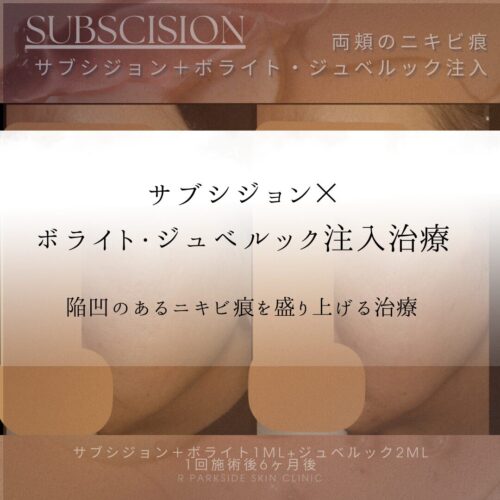 通常、ポテンツァなどのマイクロニードルRF照射は、2、3ヶ月ごとに最低3回以上の施術が推奨ですが、下記の患者様は、しっかり保険治療を行うことで、少ない回数、尚且つ期間が空いて施術してもきちんと効果を出すことができた患者様です。