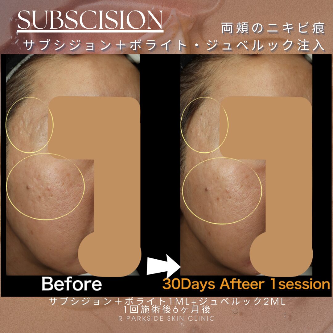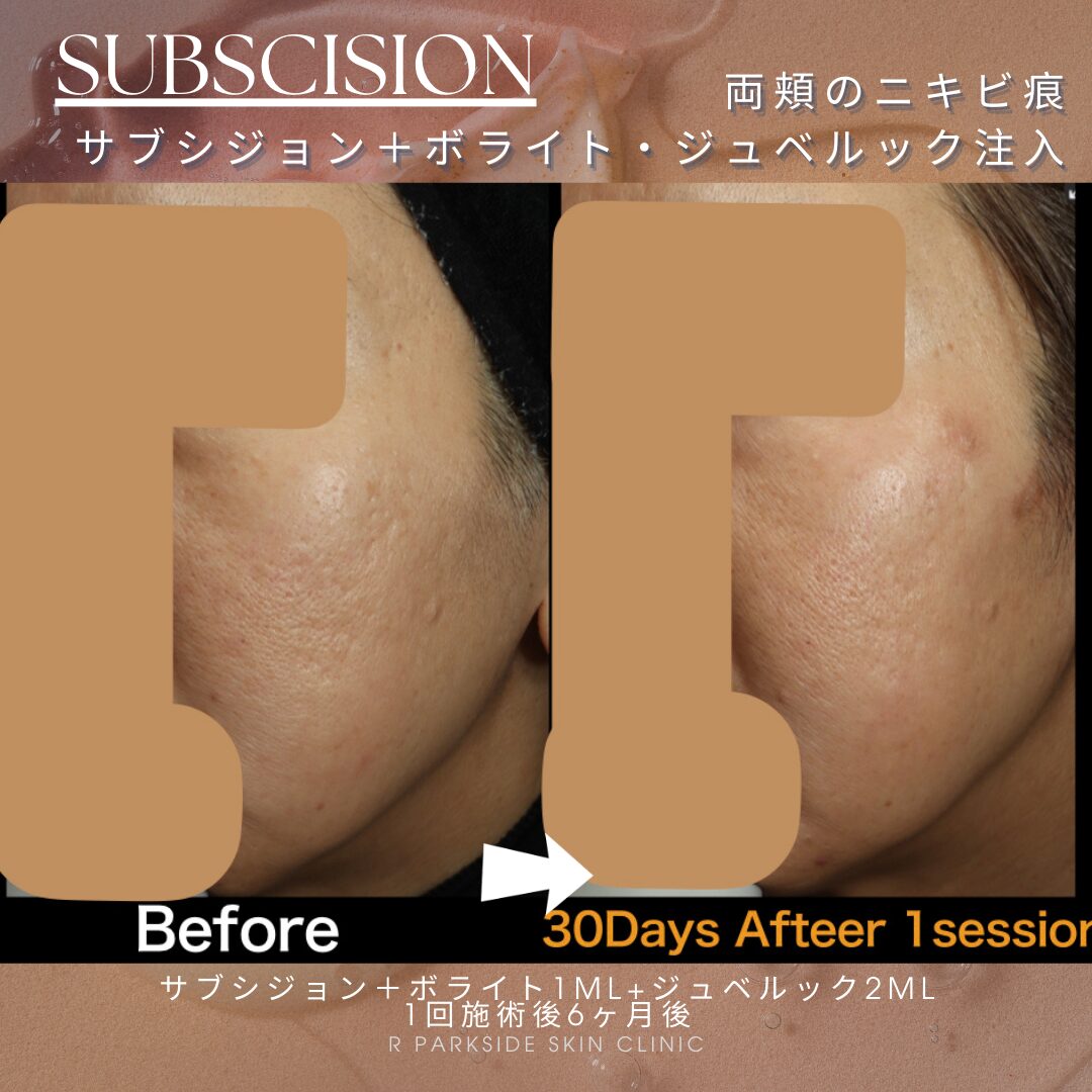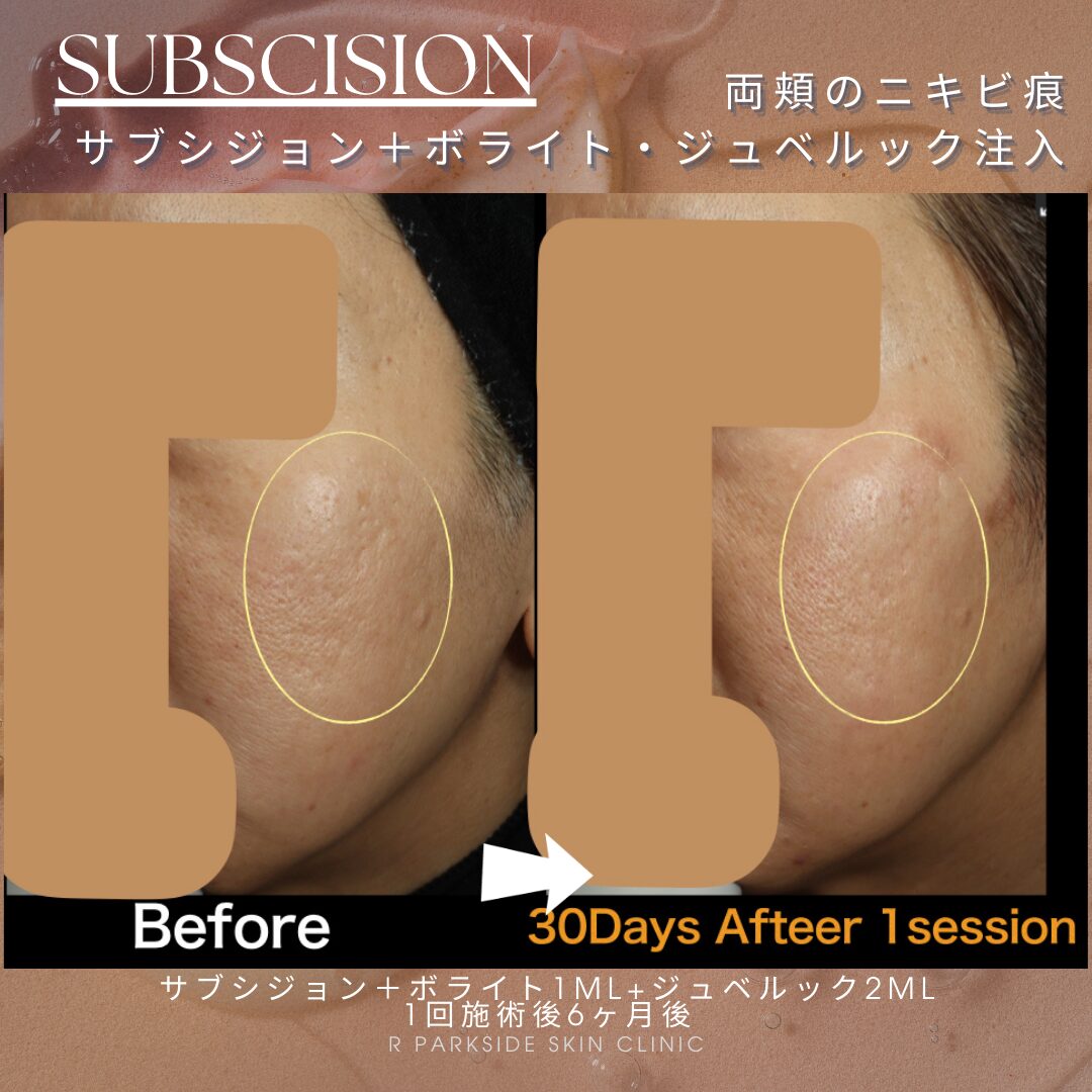 【深くなだらかなニキビ痕にはサブシジョン+ボライト・ジュベルック注入】
