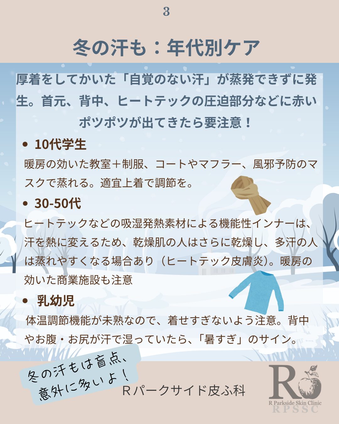 💧 冬のあせも(蒸れ蒸れ):厚着による汗の詰まり