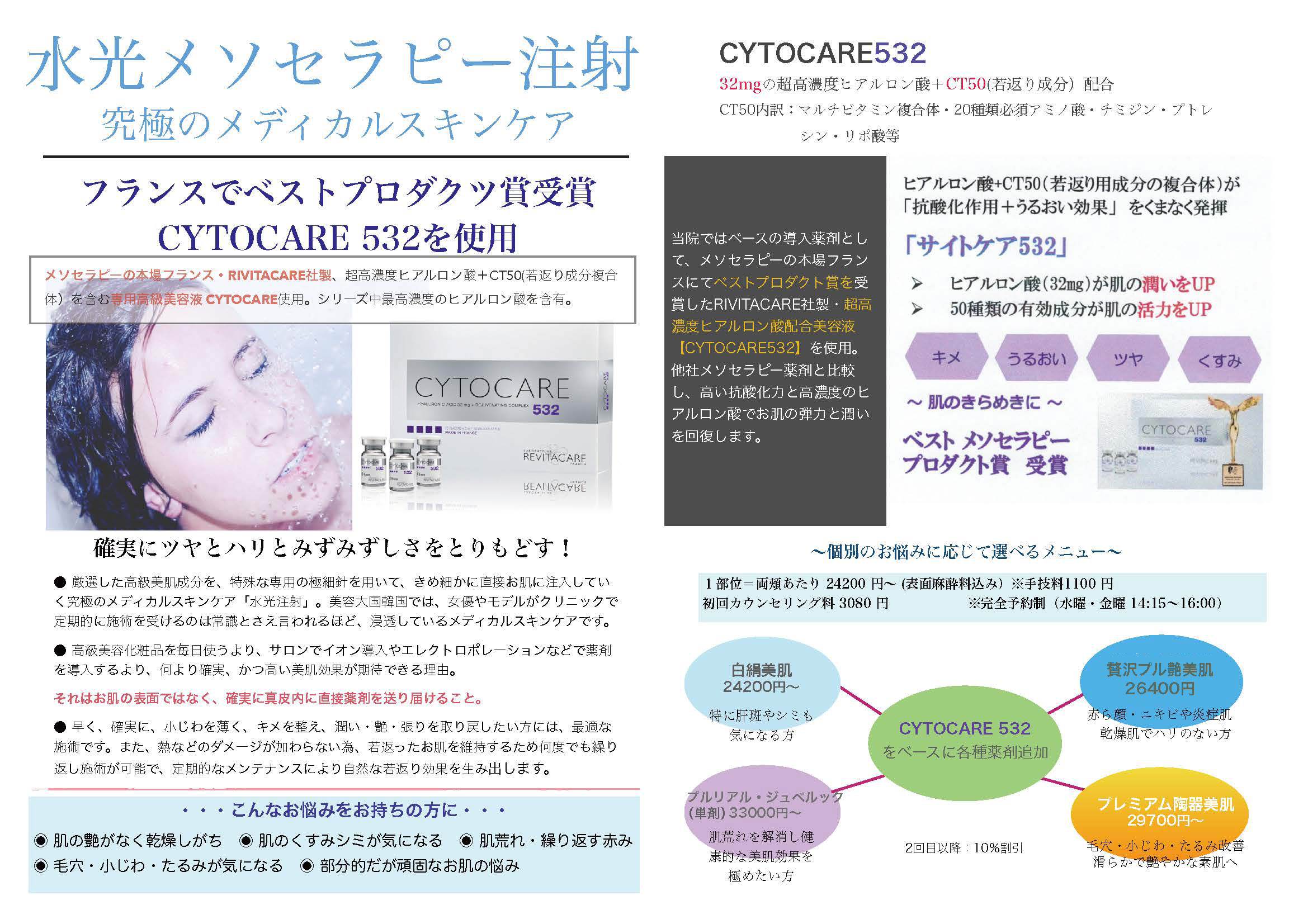 ★当院ではより確実な効果を出せるよう、ベースの導入薬剤に、フランスREVITACARE 社製の高濃度ヒアルロン酸配合美容液【CYTOCARE532】 を使用しております。