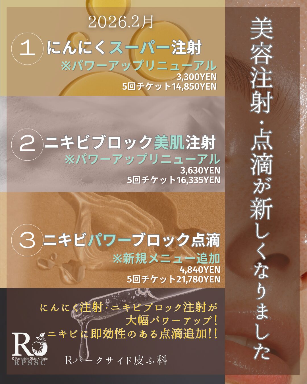 【美容注射/点滴メニュー⭐️一部リニューアル・新規追加】