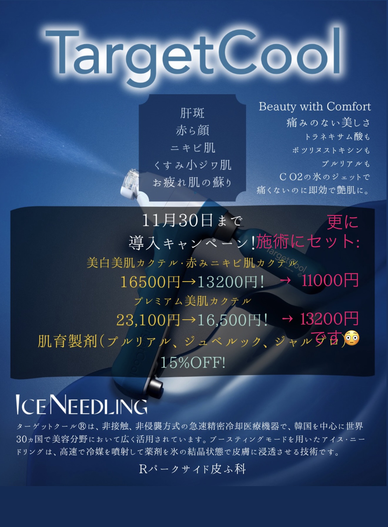 ダウンタイムほぼなし、肌荒れしていても大丈夫、ニキビたくさんでも即鎮静もできる、ターゲットクールでの肌育製剤導入は特におすすめですよー❣️