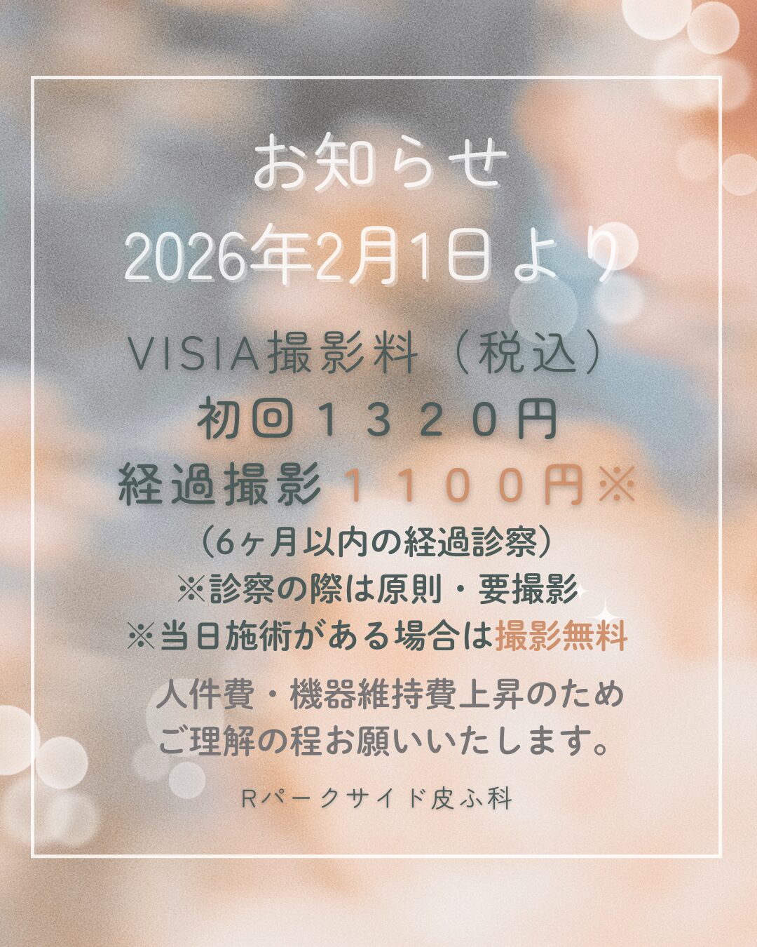 2026年2月1日より、美容診療の際にお顔のお肌の画像診断を行うVISIA撮影料を改定させて頂きます。